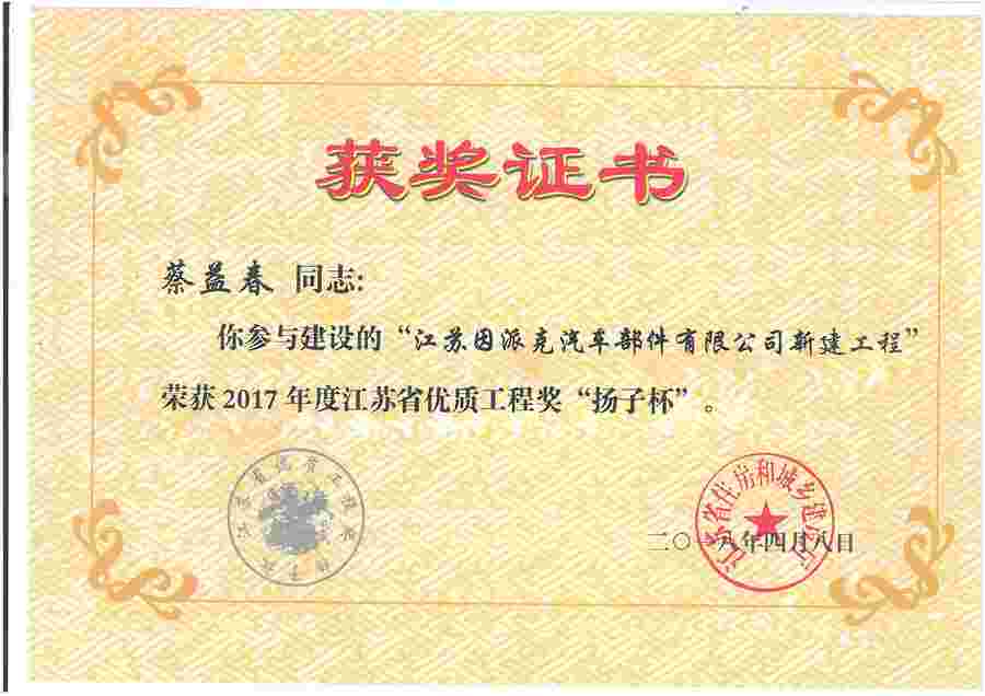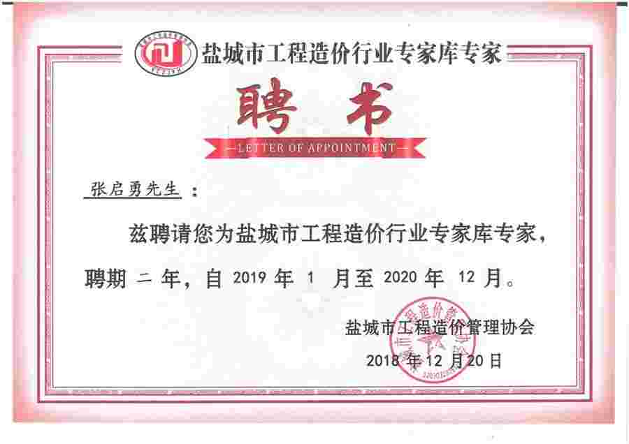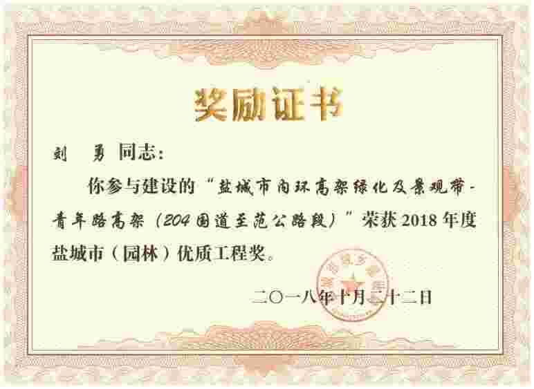 刘勇-2018年度盐城市(园林)优质工程奖