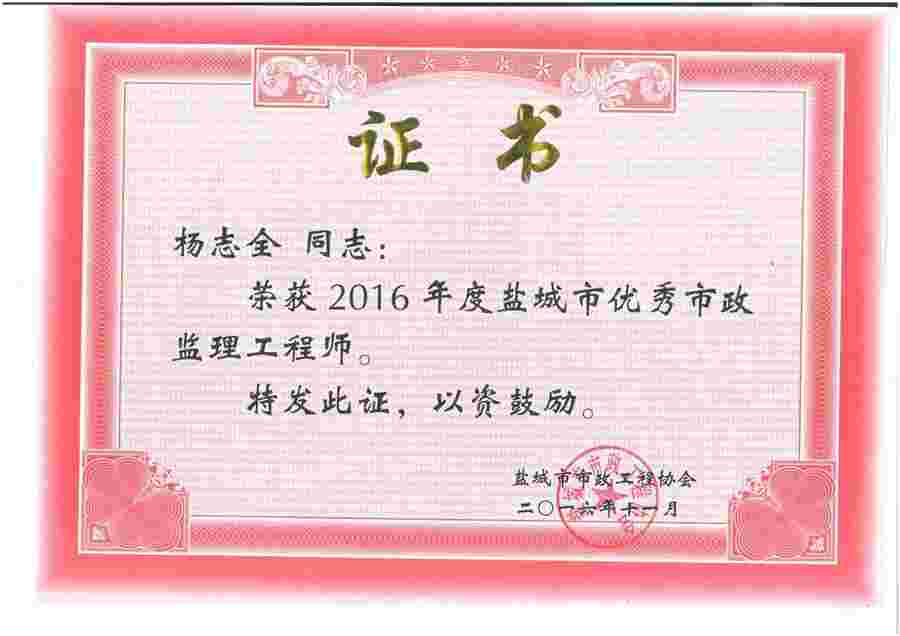市优秀市政监理工程师-杨志全