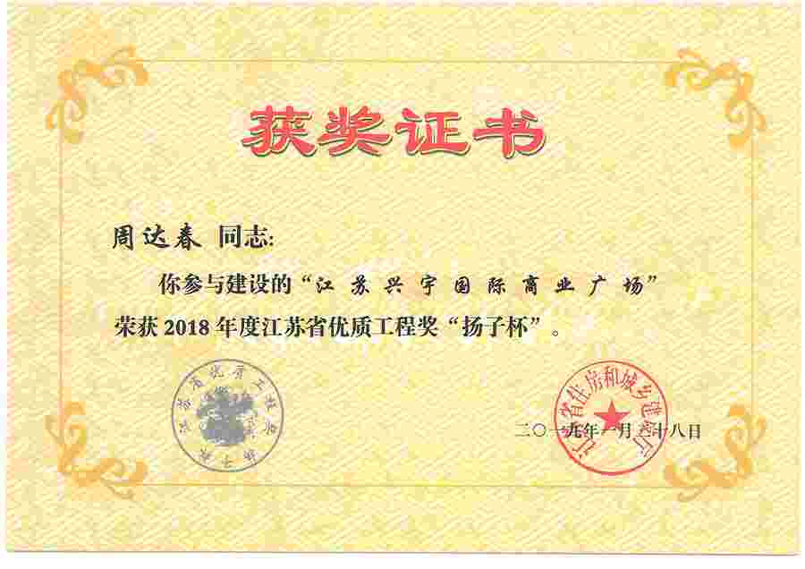 刘星星-2018年度盐城市(园林)优质工程奖
